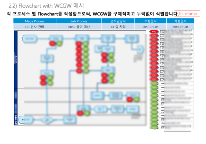 ∙ 업무의 흐름을 도식화하고 절차마다 위험요소와 위험을 통제할 수 있는 대응방안을 기술한 문서