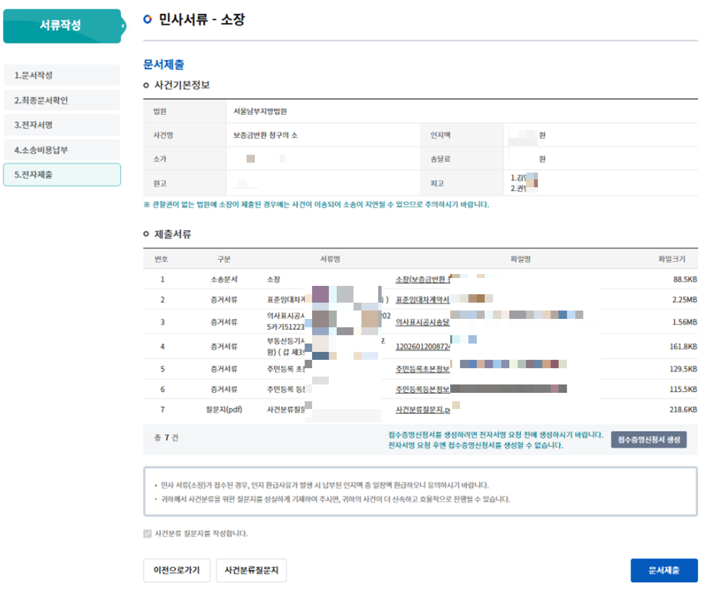 11) 이제 소송비용을 납부하고 전자제출을 하면 끝난다.